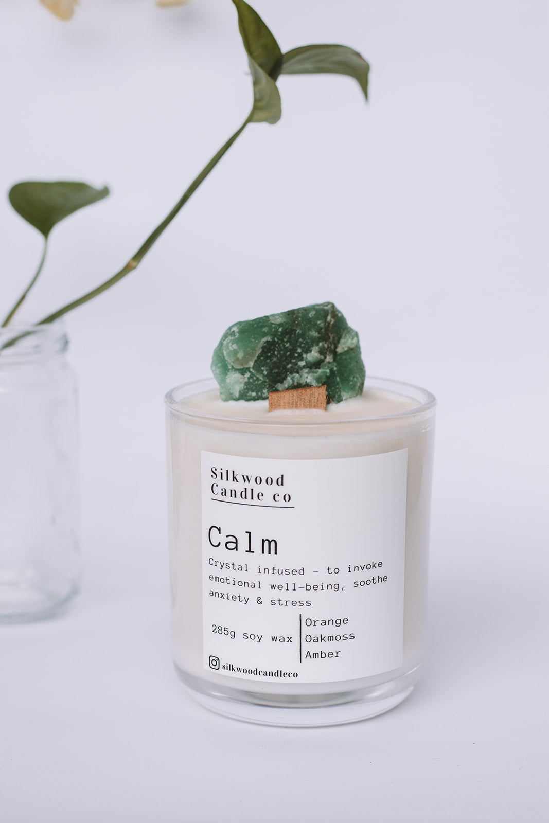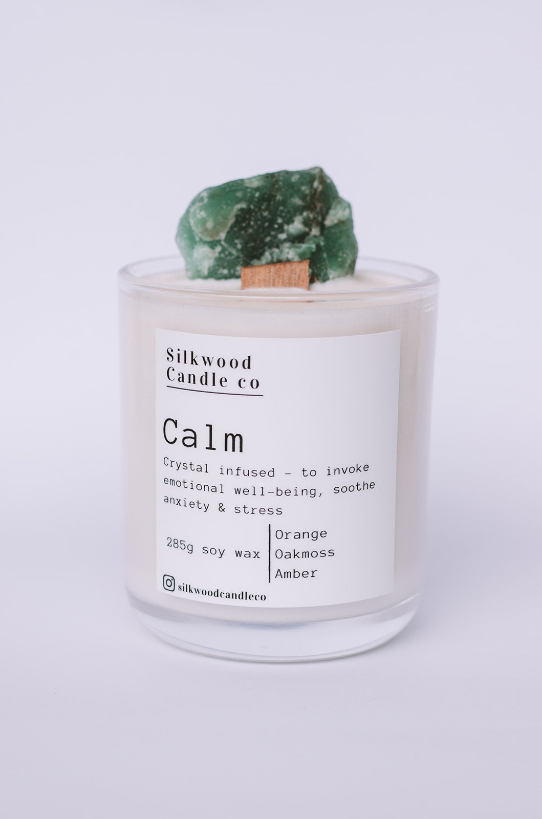 Infused with Green Aventurine to invoke emotional well being, soothe feelings of anxiety and stress. “Calm” is combined with the earthy fragrance of Orange, Oakmoss & Amber.